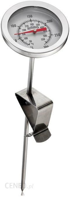 Termometr do głębokiego tłuszczu sprawdzi się zarówno do pomiaru temperatury przy smażeniu na głębokim tłuszczu, przygotowywaniu karmelków lub gotowaniu w niskich temperaturach. Klips, który został dołączony do termometru umożliwia jego stabilne zaczepienie na krawędzi naczynia. Termometr umożliwia pomiar temperatury w zakresie od 0°C do +300°C.Wymiary :długość – 21 cmśrednica – 5,5 cmMateriał:stal nierdzewna